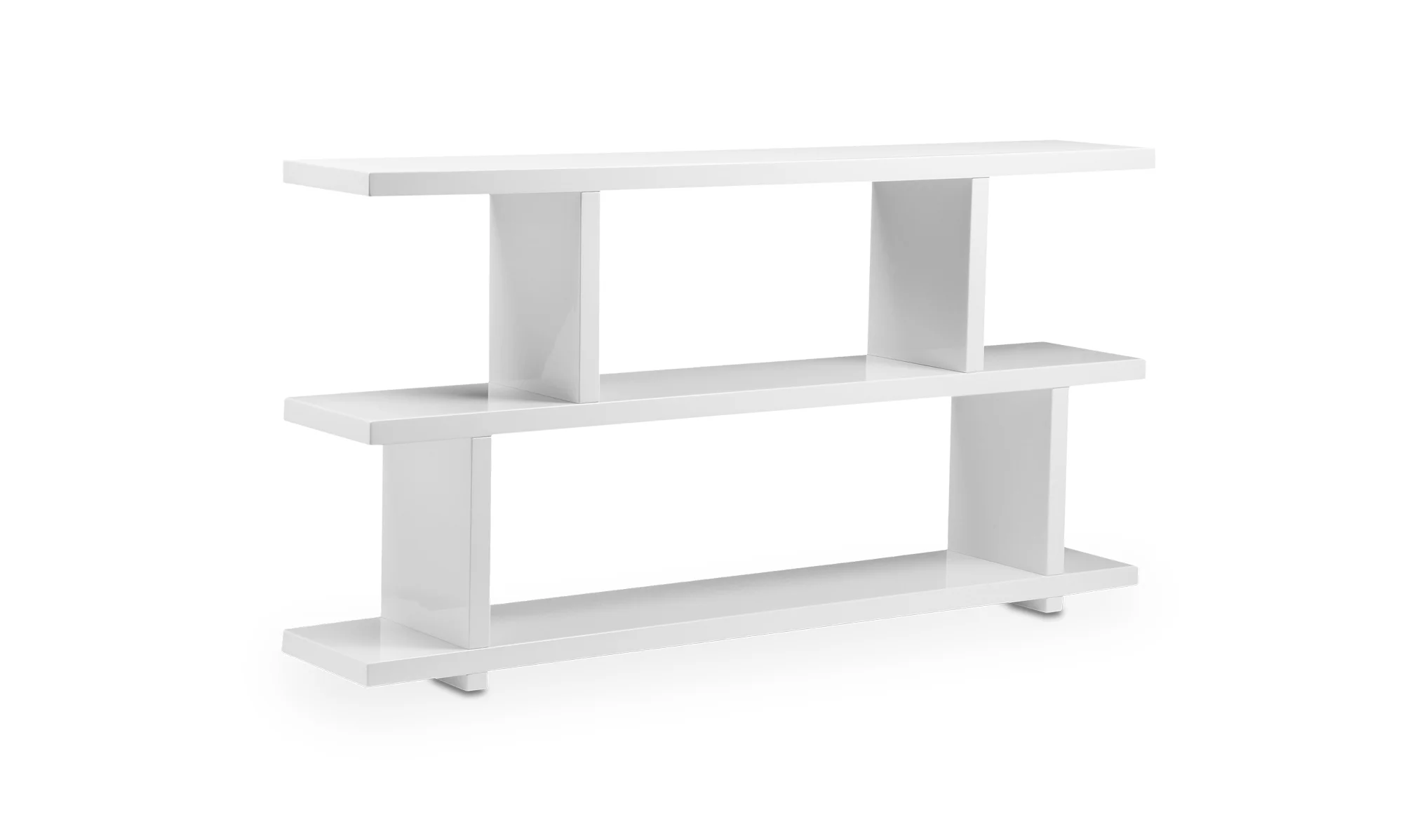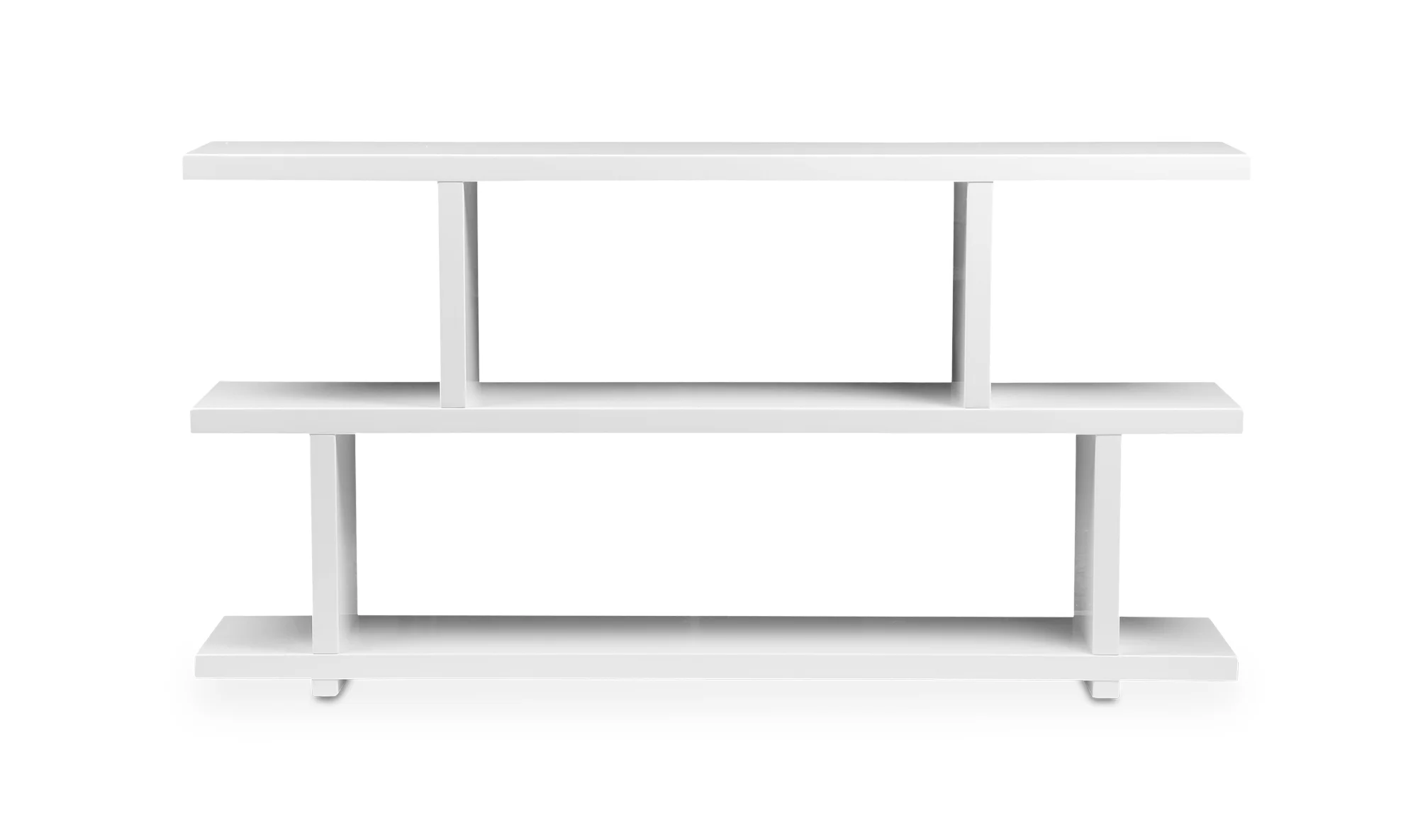 moreKeep your living room clean and organized with this ultramodern console table. Its two shelf design with dividers provides the perfect space for storage and style. Or use the console table to create a beautiful division between rooms. Whatever your use this console table keeps your rooms stylish and organized.